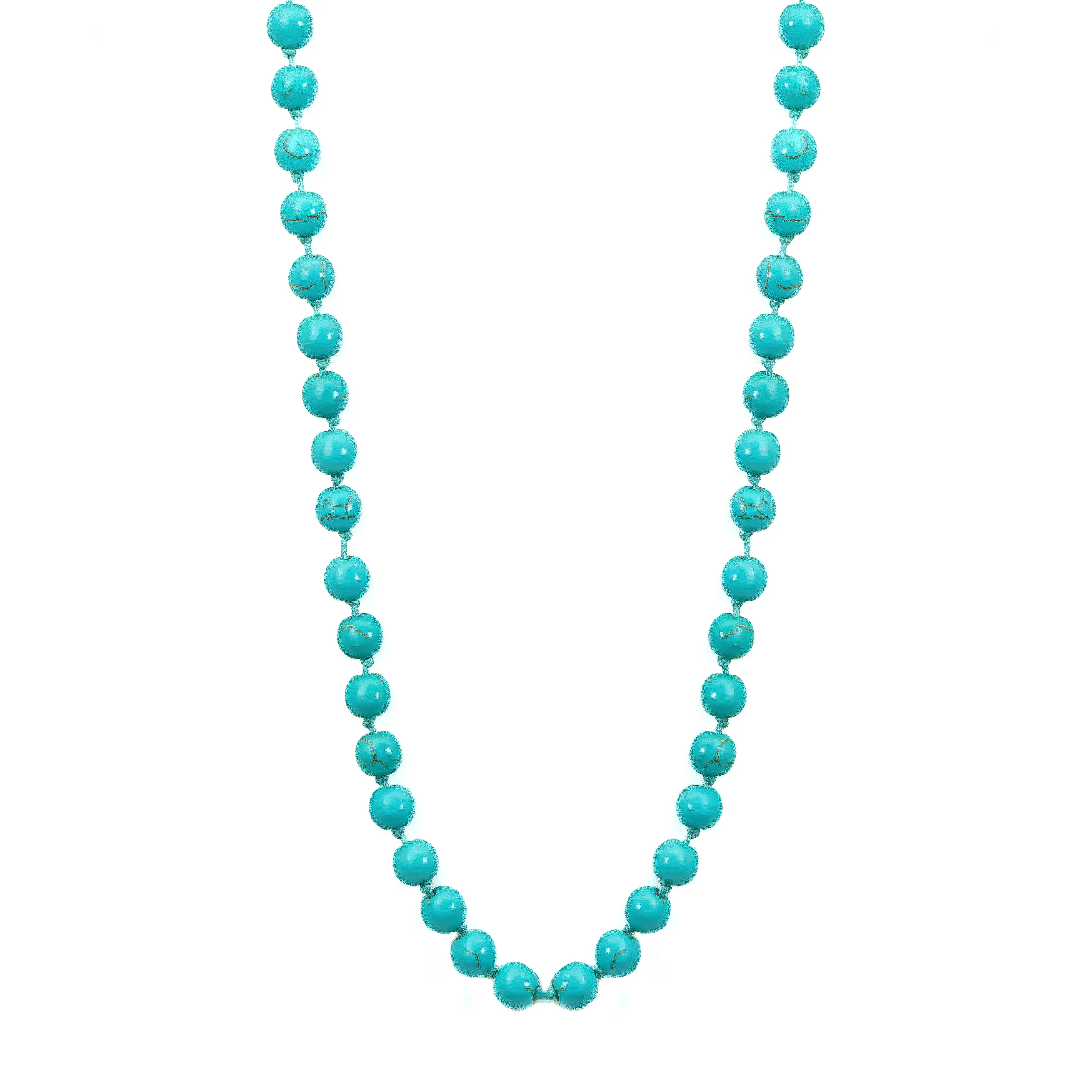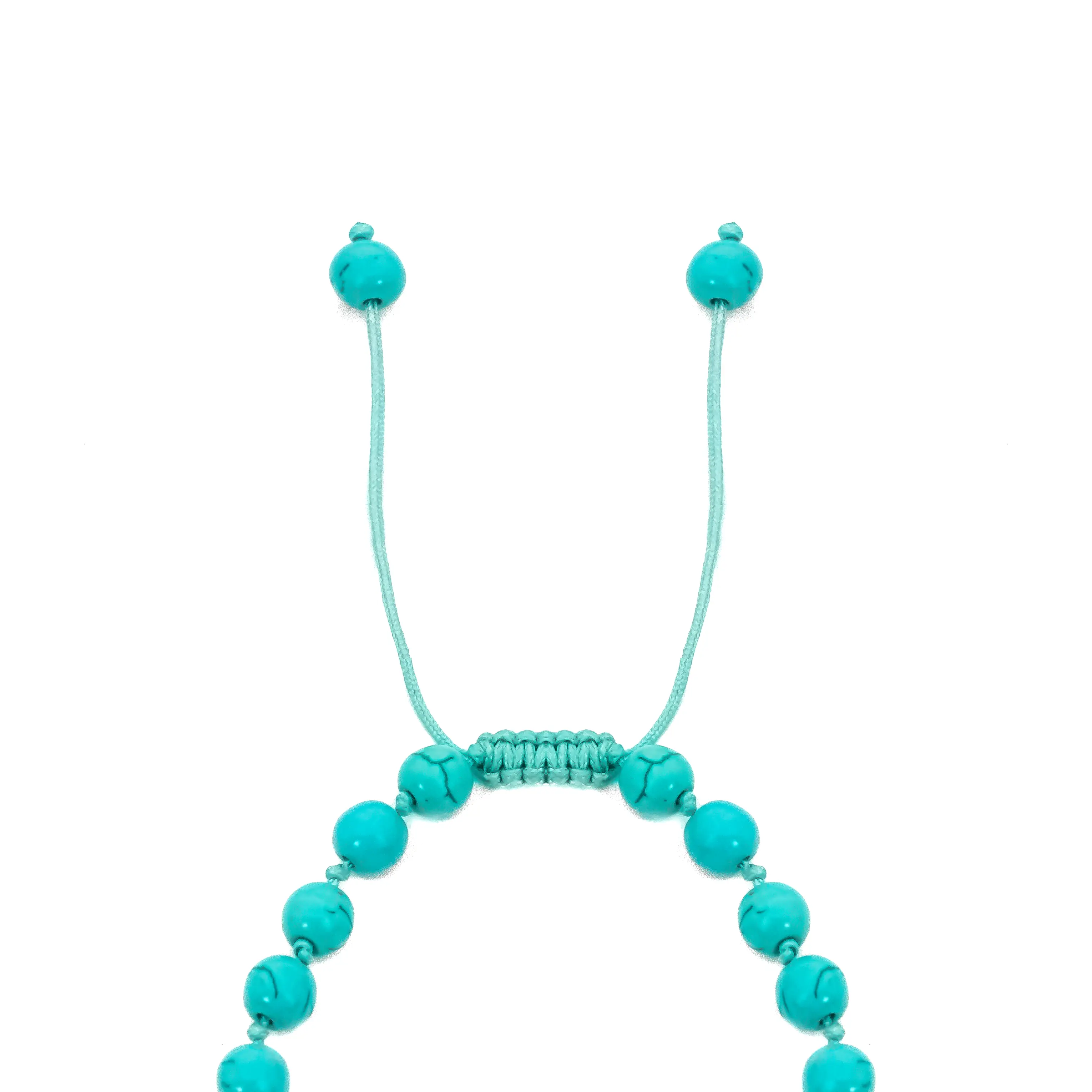 ویژگی برجسته این فیروزه در رنگ آبی فیروزهای خالص و زندهاش است که با رگههای ظریف و طبیعی خود، بافتی ارگانیک و منحصربهفرد به هر دانه میبخشد. دانههای ۶ میلیمتری با صیقلکاری عالی، جلوهای نرم و دلپذیر دارند. ساختار تنظیمپذیر گره مَکرَمه، که در عکس نمای نزدیک پیداست، با نخ همرنگ و مستحکم اجرا شده است تا این مدل گردنبند به راحتی برای هر اندازه و هر نوع پوششی قابل تنظیم باشد. این قابلیت به شما امکان میدهد بدون دردسر، ارتفاع دلخواه را برای قرارگیری ایدهآل روی سینه یا یقه لباستان انتخاب کنید. این تلفیق زیبایی طبیعی و طراحی کاربردی، این مدل گردنبند را از یک قطعه تزئینی ساده متمایز میکند.